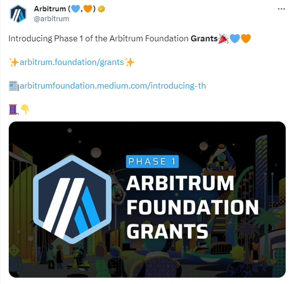 Arbitrum財団は、Arbitrumエコシステムに利益をもたらす分散型アプリケーション、ツール、インフラに焦点を当てた財団助成金プログラムを発表しました。なお、これは財団ベースのイニシアチブであり、ArbitrumDAOが運営する助成金プログラムとは重複しません。